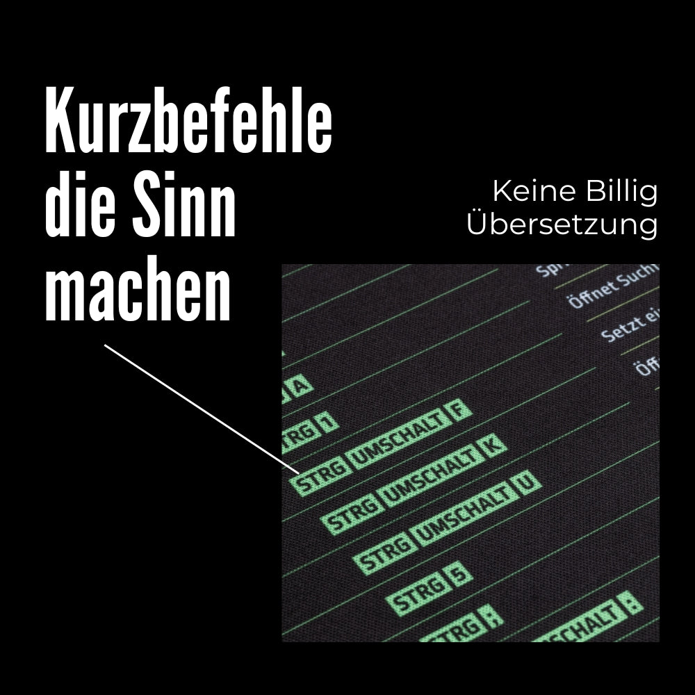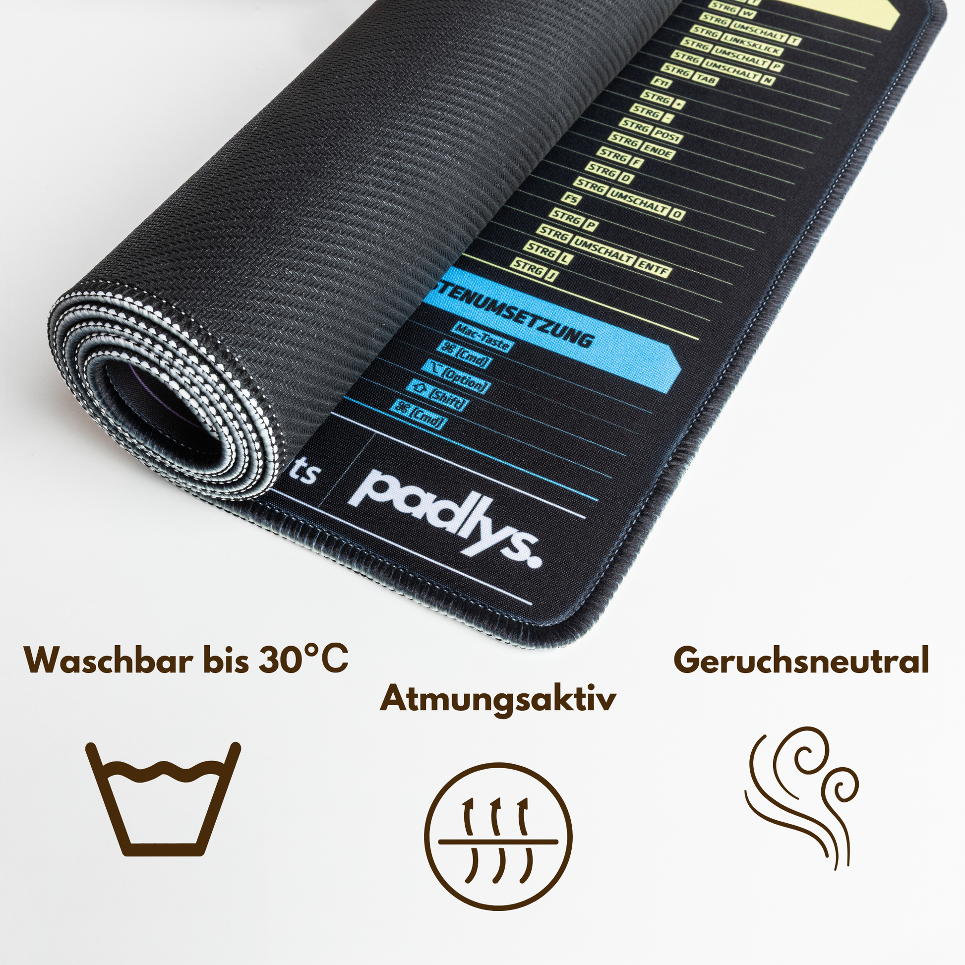 Padlys - Office Mauspad Deutsch – Tastenkombinationen – Made in Germany